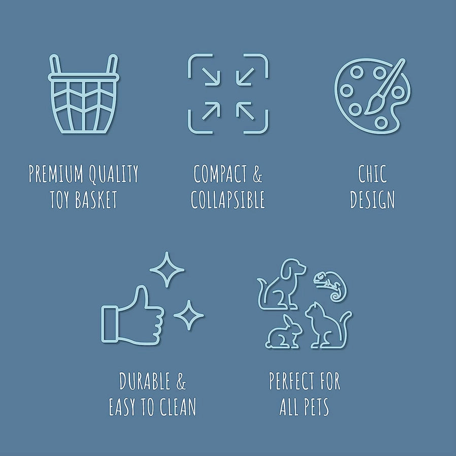 Perfect for pet lovers, the "Capri" Toy Basket is a splendid storage solution that blends seamlessly with any style of decor. Each casual container is crafted from sustainable, FDA-approved 100% organic cotton with a protective inner lining. Its soft-sided design easily collapses for storage and sturdy handles make it portable from room-to-room. The spacious interior and chic design are ideal for holding more than just pet's playthings -- use it to store throw pillows, blankets or even towels. To keep your basket as-good-as-new, simply hand wash and let air-dry.