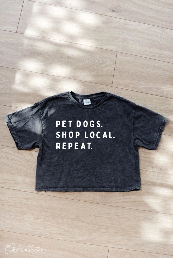 Pet Dogs. Shop Local. Repeat. Cropped Mineral Graphic Top